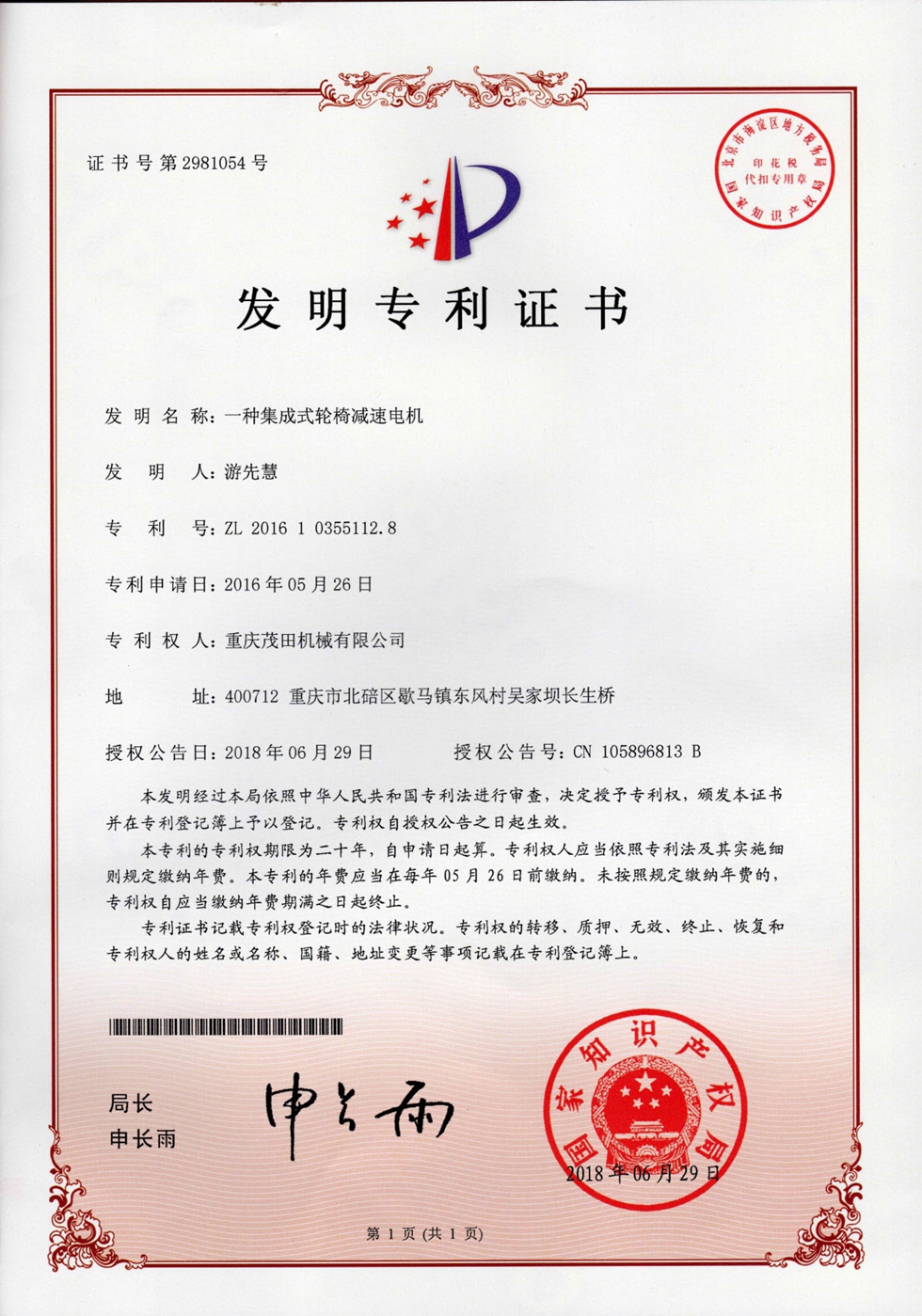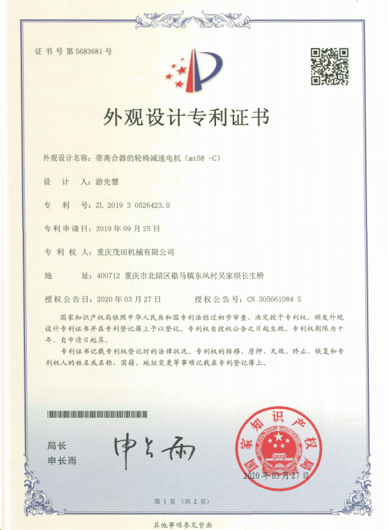 重慶茂田機械有限公司是國家級小巨人企業(yè)、國家高新技術企業(yè)、重慶市專精特新企業(yè)、重慶市知識產權優(yōu)勢企業(yè),致力于現代化山地農業(yè)機械、各類非標減速電機及其控制系統的研發(fā)、生產、銷售。擁有重慶市市級研發(fā)平臺1個 目前研發(fā)、生產、銷售產品廣泛應用于農業(yè)機械、醫(yī)療康復設備、交通代步工具、智能搬運設備、以及機器人動力系統等領域。我們的產品具有完整的自主知識產權,擁有多項專利技術及“重慶